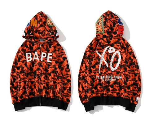 BAPE x XO Camouflage Shark Full Zip Hoodie Orange